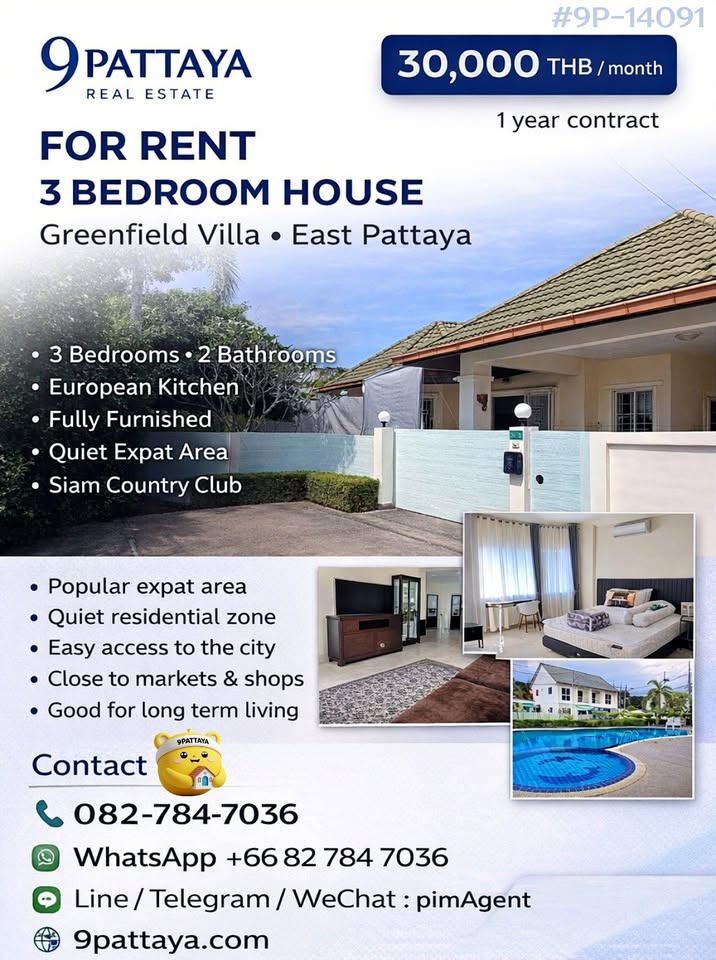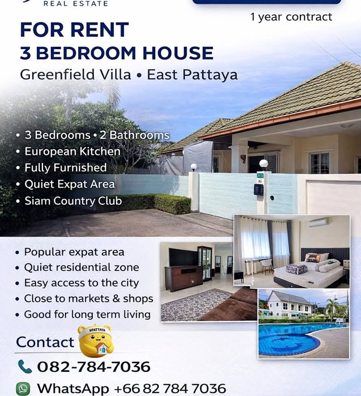 ให้เช่า | บ้าน 3 ห้องนอน Greenfield Villa – เลี้ยงสัตว์ได้ ซอยสยามคันทรีคลับ พัทยาตะวันออก