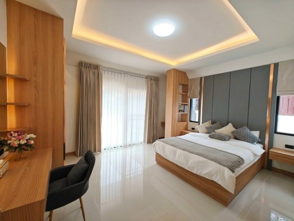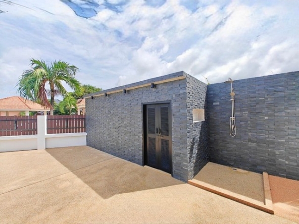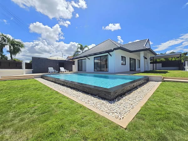#9P-10057 วิลล่า 4 ห้องนอน บนถนนสยามคันทรีคลับ พัทยา ทำเลทอง ใกล้โรงเรียนนานาชาติชั้นนำ มีสระว่ายน้ำส่วนตัว รายละเอียดทรัพย์สิน ตำแหน่งที่ตั้ง - ตำบล: หนองปรือ - อำเภอ: บางละมุง - จังหวัด: ชลบุรี - ทำเลที่ตั้ง: ถนนสยามคันทรีคลับ รายละเอียดโครงการ คุณสมบัติหลัก - พื้นที่ดิน: 125.3 ตรว. (501.2 ตรม.) - พื้นที่ใช้สอย: 220 ตรม. - จำนวนห้องนอน: 4 ห้อง (สามารถแปลงเป็นออฟฟิศได้ 1 ห้อง) - จำนวนห้องน้ำ: 3 ห้อง สิ่งอำนวยความสะดวก - ที่จอดรถพร้อมรีโมทประตูอัตโนมัติผ่านมือถือ - สระว่ายน้ำส่วนตัวขนาด 4x8 ม. (ระบบน้ำเกลือจากุซซี่) - รปภ. 24 ชั่วโมง สถานที่ใกล้เคียง - โรงเรียนสว่างบริบูรณ์วิทยา: 5 นาที - โรงเรียนนานาชาติธาราพัฒนา: 8 นาที - โรงเรียนนานาชาติรีเจ้นท์: 15 นาที - โรงเรียนนานาชาติรักบี้: 20 นาที - พัทยากลาง: 10 นาที - อ่างเก็บน้ำมาบประชัน: 10 นาที จุดเด่นโครงการ วิลล่าหรูในทำเลทอง ใกล้โรงเรียนนานาชาติชั้นนำ มีสระว่ายน้ำส่วนตัว ระบบรักษาความปลอดภัย 24 ชม. และระบบอำนวยความสะดวกครบครัน เหมาะสำหรับครอบครัวที่ต้องการความเป็นส่วนตัวและความสะดวกสบาย ราคาและเงื่อนไข - ราคาขาย: 14.5 ล้านบาท - เงื่อนไข: ขายพร้อมชื่อบริษัท 4 Bedroom Villa on Siam Country Club Road, Pattaya Property Details Location - Subdistrict: Nong Prue - District: Bang Lamung - Province: Chonburi - Location: Siam Country Club Road Project Details Main Features - Land Area: 125.3 sq.wah (501.2 sq.m.) - Living Area: 220 sq.m. - Bedrooms: 4 (1 room can be converted to an office) - Bathrooms: 3 Amenities - Parking with automatic remote-controlled mobile phone door - Private Swimming Pool 4x8 m (Jacuzzi Salt System) - 24-hour Security Nearby Places - Sawangboriboon Wittaya School: 5 minutes - Tara Pattana International School: 8 minutes - Regents International School: 15 minutes - Rugby International School: 20 minutes - Central Pattaya: 10 minutes - Mabprachan Lake: 10 minutes Property Highlights A luxurious villa in a prime location near top international schools, featuring a private swimming pool, 24-hour security system, and complete convenience facilities. Ideal for families seeking privacy and comfort. Price and Conditions - Selling Price: 14.5 million baht - Conditions: Sale with company name 位于暹罗乡村俱乐部路的4卧室别墅,芭堤雅 房产详情 位置 - 分区: 农普鲁 - 区: 邦拉穆恩 - 省份: 春武里 - 位置: 暹罗乡村俱乐部路 项目详情 主要特征 - 土地面积:125.3 平方瓦(501.2 平方米) - 居住面积:220 平方米 - 卧室:4 间(1 间可转换为办公室) - 浴室:3 间 设施 - 带自动远程手机门控的停车场 - 私人游泳池 4x8 米(按摩浴缸盐系统) - 24小时安保 周边地点 - 萨旺博里布恩维塔亚学校:5分钟 - 塔拉帕塔那国际学校:8分钟 - 瑞金斯国际学校:15分钟 - 橄榄球国际学校:20分钟 - 芭堤雅中心:10分钟 - 马布普拉春湖:10分钟 项目亮点 位于黄金地段的豪华别墅,靠近顶级国际学校,拥有私人游泳池、24小时安保系统和完善的便利设施。非常适合追求隐私和舒适的家庭。 价格和条件 - 销售价格:1,450万泰铢 - 条件:随公司名称出售 Роскошная 4-спальная вилла на шоссе Сиам Кантри Клаб, Паттайя Характеристики недвижимости Расположение - Подрайон: Нонг Пруе - Район: Банг Ламунг - Провинция: Чонбури - Локация: Шоссе Сиам Кантри Клаб Детали проекта Основные характеристики - Площадь земли: 125.3 кв. вах (501.2 кв. м) - Жилая площадь: 220 кв. м - Спальни: 4 (1 комната может быть преобразована в офис) - Ванные комнаты: 3 Удобства - Парковка с автоматическим дистанционным управлением через мобильный телефон - Частный бассейн 4x8 м (Джакузи с солевой системой) - Круглосуточная безопасность Близлежащие места - Школа Саванг Борибун Виттая: 5 минут - Международная школа Тара Паттана: 8 минут - Международная школа Риджентс: 15 минут - Международная школа Регби: 20 минут - Центр Патт