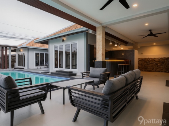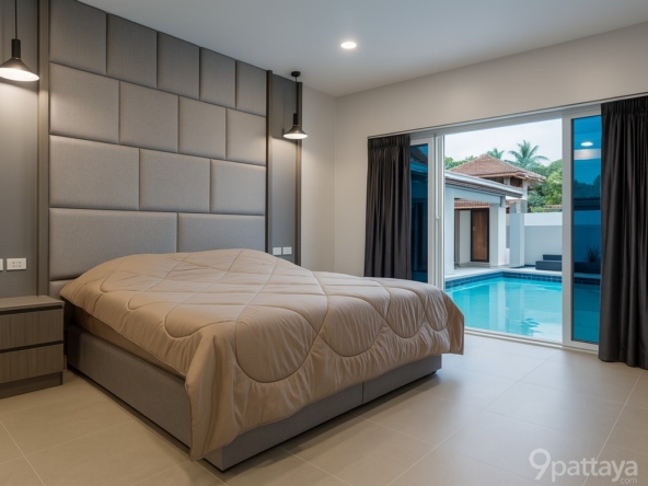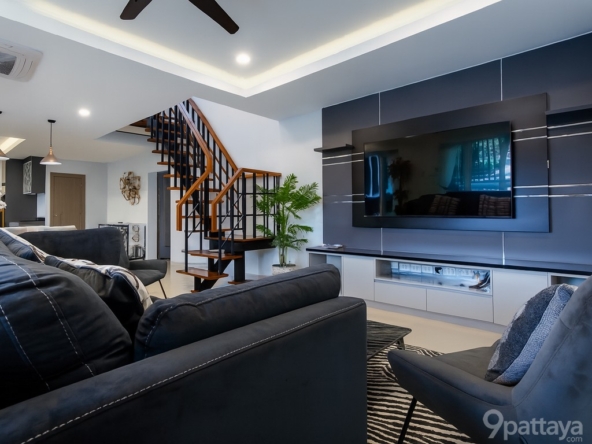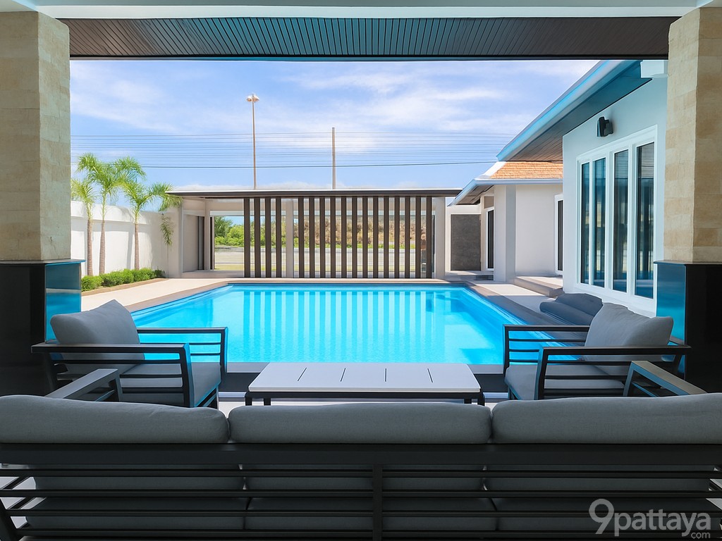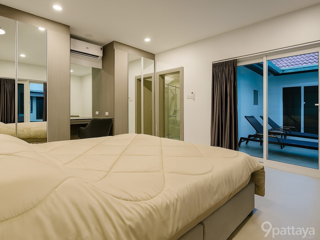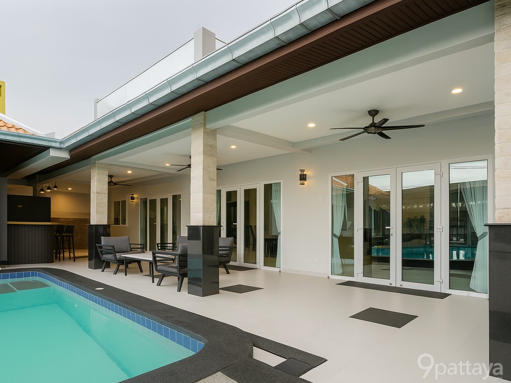 #9P-10153 "บ้านเดี่ยวหรูรีโนเวทใหม่พร้อมสระว่ายน้ำ - ทำเลเยี่ยมใกล้เมืองพัทยาและโรงเรียนนานาชาติ" ที่ตั้ง: ตำบลโป่ง อำเภอบางละมุง จังหวัดชลบุรี รายละเอียดโครงการ: - บ้านเดี่ยว 2 ชั้น พื้นที่ 118.40 ตารางวา (473.60 ตารางเมตร) - 4 ห้องนอน 5 ห้องน้ำ พร้อมระบบน้ำร้อนทุกห้อง - เกสต์เฮาส์แยก 2 ห้องนอน - ครัวไทยและครัวยุโรปแยกส่วน - โซนซักล้างและห้องเก็บของ 2 ห้อง - ที่จอดรถในบ้าน 3 คัน หน้าบ้าน 2 คัน จุดเด่น: บ้านรีโนเวทใหม่สไตล์โมเดิร์น ครบครันด้วยสระว่ายน้ำระบบเกลือพร้อมจากุซซี่ เครื่องใช้ไฟฟ้าครบครัน ระบบรักษาความปลอดภัย ใกล้โรงเรียนนานาชาติและทางด่วนหมายเลข 7 เพียง 15 นาทีถึงใจกลางเมืองพัทยา สิ่งอำนวยความสะดวก: - สระว่ายน้ำระบบเกลือพร้อมจากุซซี่ - เครื่องใช้ไฟฟ้าครัวครบชุด (เตาแก๊ส เครื่องดูดควัน ไมโครเวฟ เตาอบ เครื่องล้างจาน ตู้เย็น ตู้ไวน์) - ถังเก็บน้ำใต้ดิน 2,000 ลิตร พร้อมระบบกรองน้ำ - ประตูรั้วไฟฟ้าเลื่อน ราคา: - ขาย: 14,490,000 บาท "Luxurious Newly Renovated House with Pool - Prime Location near Pattaya City and International Schools" Location: Pong Sub-district, Bang Lamung District, Chonburi Province Project Details: - 2-story detached house, 118.40 sq.wah (473.60 sq.m) - 4 bedrooms, 5 bathrooms with hot water system - Separate guest house with 2 bedrooms - Thai and European kitchens - Laundry area and 2 storage rooms - Parking for 3 cars inside, 2 cars outside Highlights: Newly renovated modern house with salt system pool and jacuzzi, complete electrical appliances, security system, near international schools and Highway 7, only 15 minutes to central Pattaya. Facilities: - Salt system swimming pool with jacuzzi - Complete kitchen appliances (gas stove, hood, microwave, oven, dishwasher, refrigerator, wine cooler) - 2,000L underground water tank with filtration system - Electric sliding gate Price: - Sale: 14,490,000 THB "豪华全新装修泳池别墅 - 芭堤雅市中心和国际学校近在咫尺" 位置:春武里府邦拉蒙县蓬区 项目详情: - 双层独栋别墅,面积118.40平方瓦(473.60平方米) - 4间卧室,5间浴室配备热水系统 - 独立双卧室客房 - 泰式厨房和欧式厨房 - 洗衣区和2间储物室 - 室内可停3辆车,室外可停2辆车 亮点: 全新装修现代风格别墅,配备盐系统泳池和按摩浴缸,电器设备齐全,安保系统完善,临近国际学校和7号高速公路,15分钟可达芭堤雅市中心。 设施: - 盐系统泳池配按摩浴缸 - 完整厨房电器(煤气灶、抽油烟机、微波炉、烤箱、洗碗机、冰箱、红酒柜) - 2,000升地下蓄水箱配过滤系统 - 电动滑门 价格: - 售价:14,490,000泰铢 "Роскошный обновленный дом с бассейном - Первоклассное расположение рядом с центром Паттайи и международными школами" Расположение: Район Понг, округ Банг Ламунг, провинция Чонбури Детали проекта: - 2-этажный отдельный дом, 118.40 кв.вах (473.60 кв.м) - 4 спальни, 5 ванных комнат с системой горячей воды - Отдельный гостевой дом с 2 спальнями - Тайская и европейская кухни - Прачечная и 2 кладовые - Парковка на 3 машины внутри, 2 снаружи Особенности: Недавно отремонтированный современный дом с солевым бассейном и джакузи, полным комплектом бытовой техники, системой безопасности, рядом с международными школами и шоссе 7, всего 15 минут до центра Паттайи. Удобства: - Бассейн с солевой системой и джакузи - Полный комплект кухонной техники (газовая плита, вытяжка, микроволновка, духовка, посудомоечная машина, холодильник, винный шкаф) - Подземный резервуар для воды на 2,000л с системой фильтрации - Электрические раздвижные ворота Цена: - Продажа: 14,490,000 бат