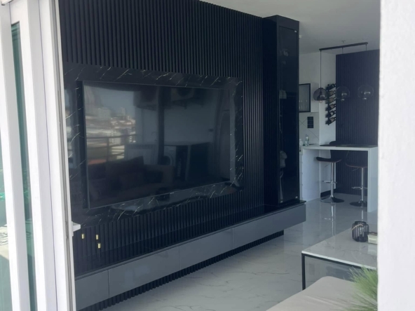 – Полная меблировка: водонагреватель, стиральная машина, ТВ, кондиционер, диван, бытовая техника, электроплита