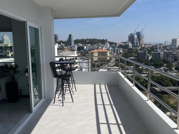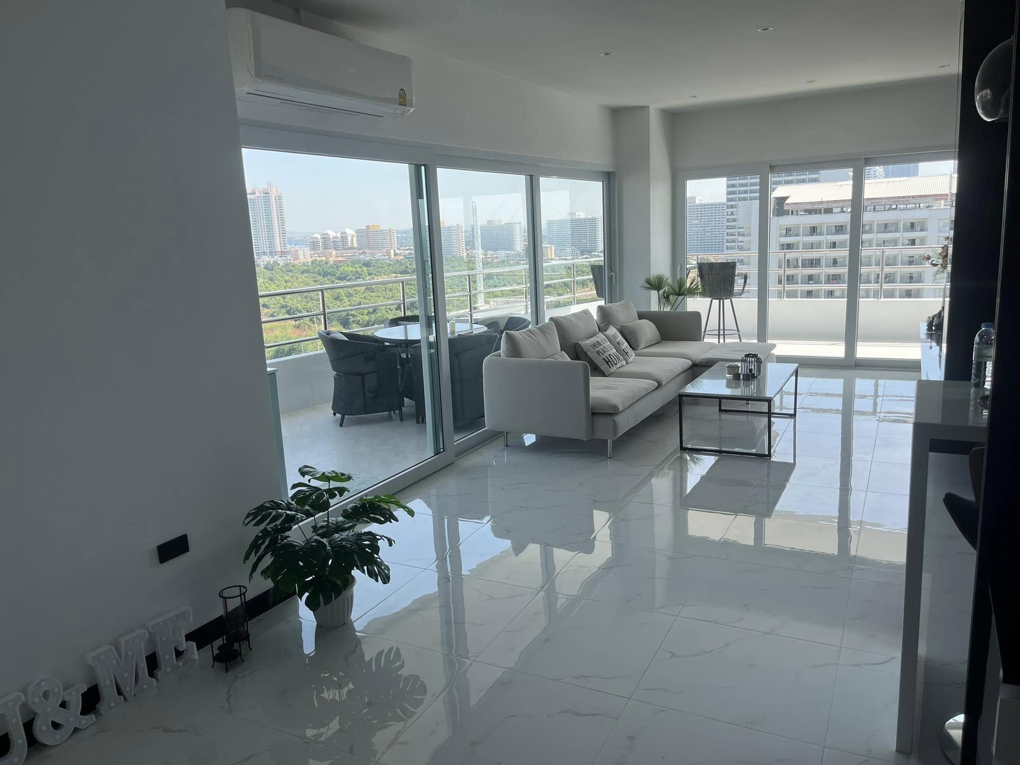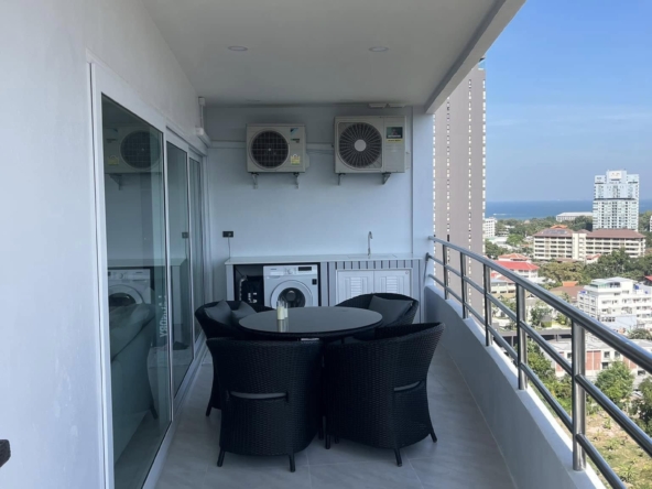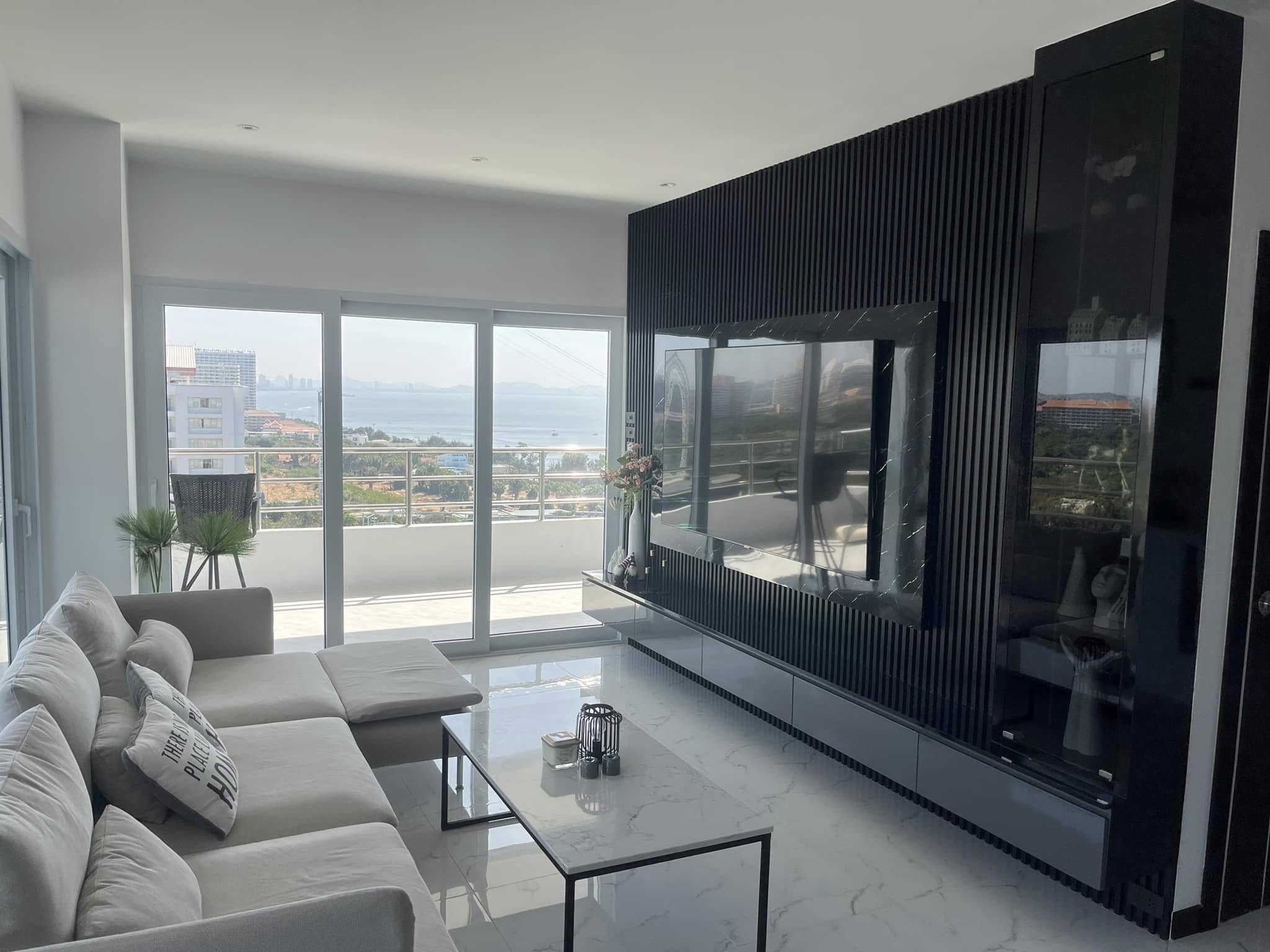 Luxury sea view condo, spacious corner unit, 100m to beach, large swimming pool, prime location near shopping centers, restaurants, bars, and Walking Street tourist area.