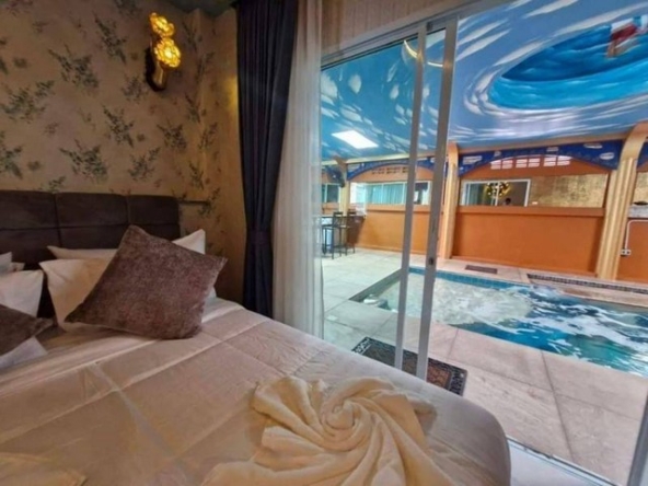 บ้านเดี่ยวพร้อมสระว่ายน้ำส่วนตัว เหมาะสำหรับพักอาศัยหรือทำธุรกิจ เช่น รายวัน มีห้องครัวถึง 2 ห้อง พร้อมเฟอร์นิเจอร์และเครื่องใช้ไฟฟ้าครบครัน ทำเลดี เดินทางสะดวก