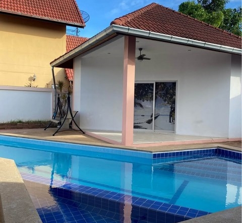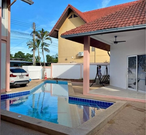 #9P-10283 บ้านเดี่ยว 2 ชั้นพร้อมสระว่ายน้ำส่วนตัว ซอยสยามคันทรีคลับ - ขายด่วน! เพียง 4.8 ล้านบาท ที่ตั้ง: ซอยสยามคันทรีคลับ ตำบลหนองปรือ อำเภอบางละมุง จังหวัดชลบุรี รายละเอียดโครงการ: - พื้นที่ 82 ตารางวา (328 ตารางเมตร) - 3 ห้องนอน 4 ห้องน้ำ - ครัวไทยด้านนอก - สระว่ายน้ำส่วนตัว - เครื่องปรับอากาศ 4 เครื่อง - ที่จอดรถมอเตอร์ไซค์ - พร้อมเฟอร์นิเจอร์และเครื่องใช้ไฟฟ้า - อนุญาตให้เลี้ยงสุนัขได้ จุดเด่น: บ้านเดี่ยว 2 ชั้นพร้อมสระว่ายน้ำส่วนตัว ทำเลดีใกล้ตลาดและแหล่งชุมชน ห่างจากทะเลพัทยาเพียง 4 กิโลเมตร มีครัวไทยแยกเป็นสัดส่วน เหมาะสำหรับครอบครัวที่ชื่นชอบการว่ายน้ำและมีสัตว์เลี้ยง ราคาขาย: 4,800,000 บาท เงื่อนไข: โอนในนามคนไทย ค่าโอน 50/50 English Version: 2-Story Pool Villa in Soi Siam Country Club - Urgent Sale! Only 4.8M THB Location: Soi Siam Country Club, Nong Prue, Bang Lamung, Chonburi Project Details: - Land area: 82 sq.wah (328 sq.m.) - 3 bedrooms, 4 bathrooms - Outdoor Thai kitchen - Private swimming pool - 4 air conditioners - Motorcycle parking - Furnished with appliances - Pet-friendly (dogs allowed) Highlights: Two-story house with private pool in prime location near market and community areas, only 4 kilometers from Pattaya Beach. Features separate Thai kitchen, perfect for families who enjoy swimming and have pets. Sale Price: 4,800,000 THB Terms: Thai name transfer, transfer fee 50/50 中文版: 暹罗乡村俱乐部巷双层泳池别墅 - 急售!仅售480万泰铢 位置:春武里府班兰蒙区农布鲁暹罗乡村俱乐部巷 项目详情: - 土地面积:82平方瓦(328平方米) - 3间卧室,4间浴室 - 户外泰式厨房 - 私人泳池 - 4台空调 - 摩托车停车位 - 配备家具和电器 - 可养宠物(允许养狗) 亮点: 双层别墅配私人泳池,位置优越,靠近市场和社区,距离芭提雅海滩仅4公里。配备独立泰式厨房,非常适合喜欢游泳和养宠物的家庭。 售价:4,800,000泰铢 条件:泰籍人名义过户,过户费用均摊 Русская версия: Двухэтажная вилла с бассейном в Сои Сиам Кантри Клаб - Срочная продажа! Всего 4.8 млн бат Расположение: Сои Сиам Кантри Клаб, Нонг Пру, Банг Ламунг, Чонбури Детали проекта: - Площадь участка: 82 кв.ва (328 кв.м.) - 3 спальни, 4 ванные комнаты - Внешняя тайская кухня - Частный бассейн - 4 кондиционера - Парковка для мотоциклов - Меблирована с бытовой техникой - Разрешено содержание собак Особенности: Двухэтажный дом с частным бассейном в отличном месте рядом с рынком и общественными зонами, всего в 4 километрах от пляжа Паттайи. Отдельная тайская кухня, идеально подходит для семей, которые любят плавание и имеют домашних животных. Цена продажи: 4,800,000 бат Условия: Оформление на тайское имя, расходы по переоформлению 50/50 สนใจติดต่อ: * โทร: 082-784-7036 (คุณพิมพ์) * WhatsApp: +6682-784-7036 (Pimm) * Line ID: pimAgent * WeChat: pimAgent * Telegram: pimAgent