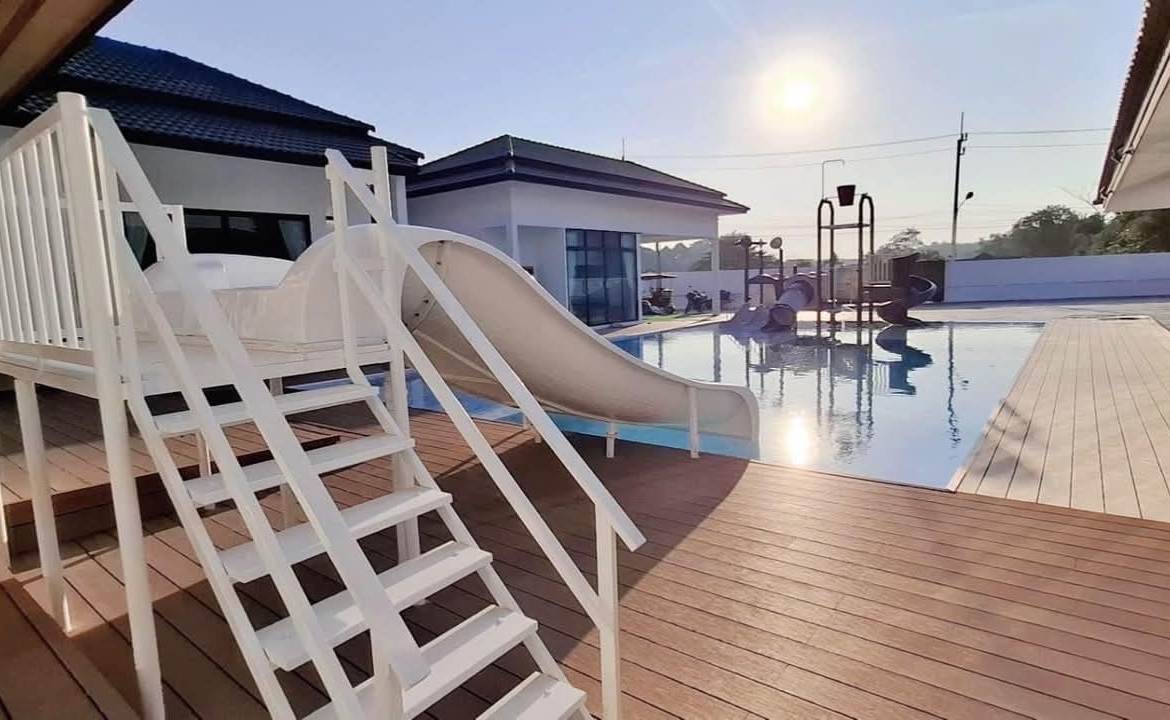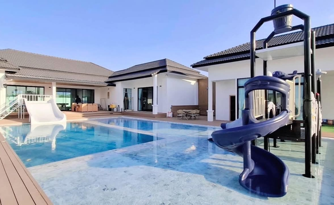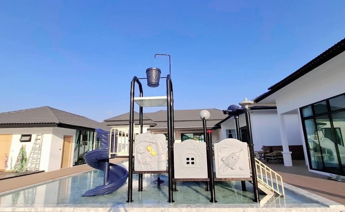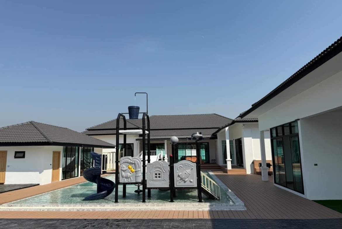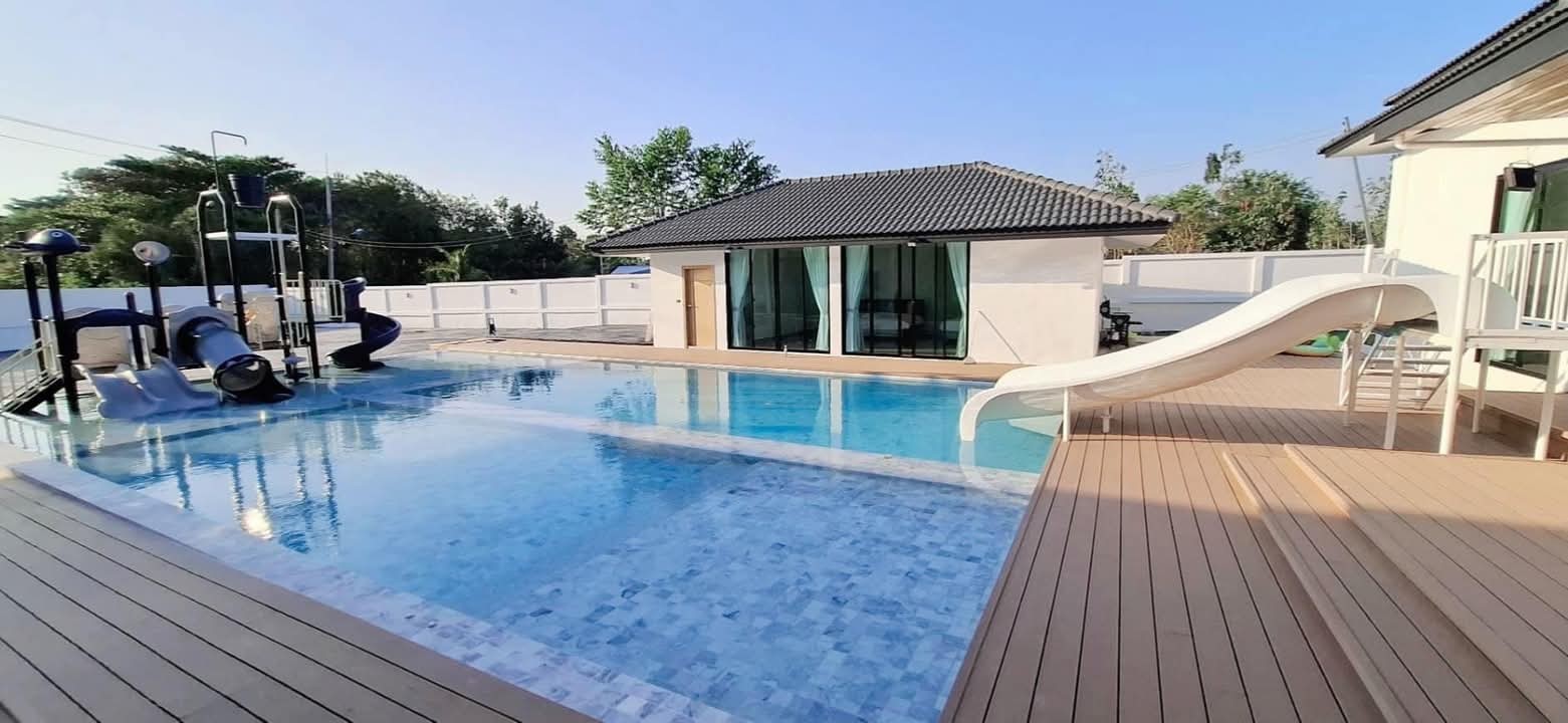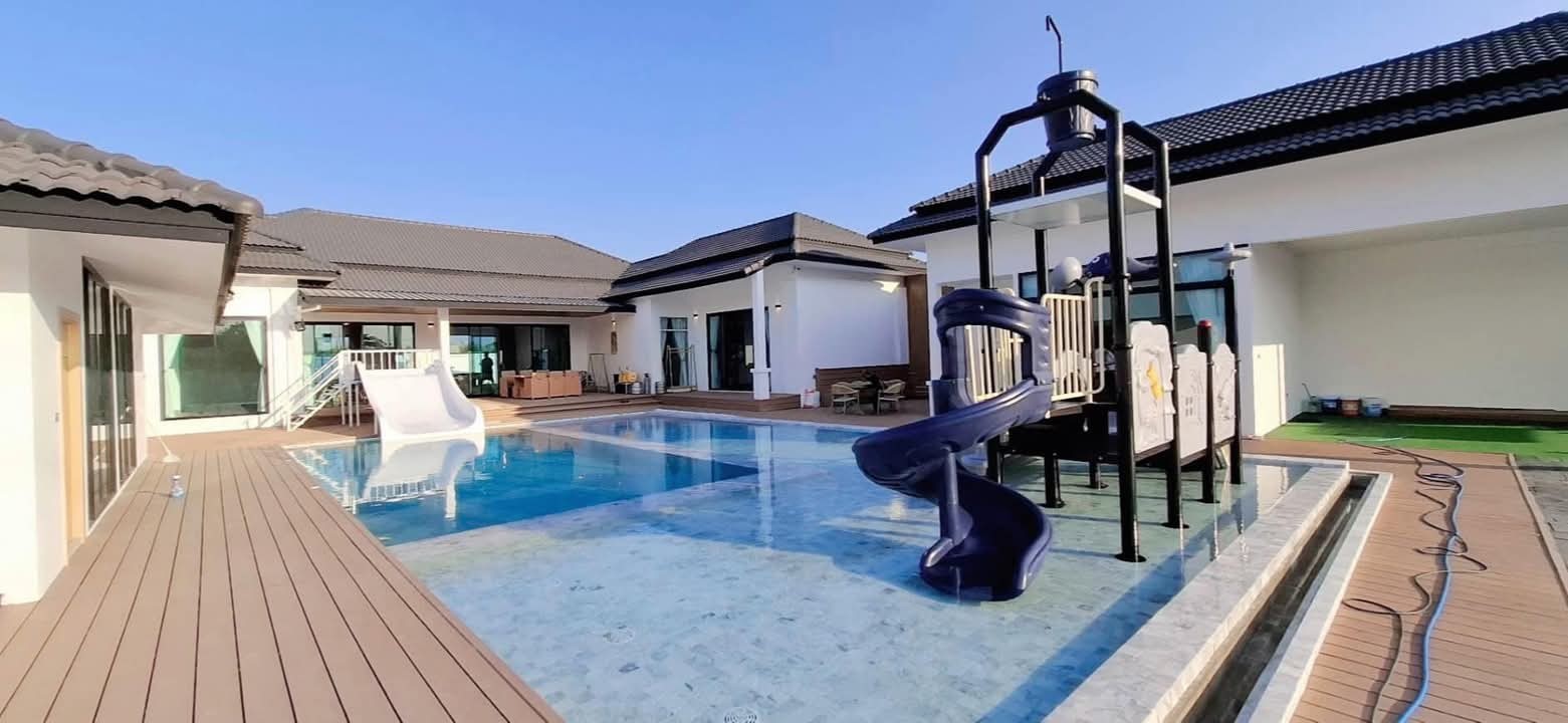 #9P-10311 พูลวิลล่าขนาดใหญ่พร้อมสไลเดอร์สวนน้ำ 5 ห้องนอน เนื้อที่ 1 ไร่ 41 ตร.ว. เหมาะทำธุรกิจ ที่พัทยา เพียง 25.9 ล้านบาท! **ที่ตั้ง:** ตำบลห้วยใหญ่ อำเภอบางละมุง จังหวัดชลบุรี **รายละเอียดทรัพย์:** - บ้านเดี่ยวพูลวิลล่าชั้นเดียว - พื้นที่ 1 ไร่ 41 ตารางวา - พื้นที่ใช้สอยรวมกว่า 700 ตารางเมตร - 5 ห้องนอน 5 ห้องน้ำ - จอดรถได้ 10 คัน - สระว่ายน้ำขนาด 5x10 เมตร (ลึก 160 ซม.) - สระว่ายน้ำเด็กขนาด 5x15 เมตร (ลึก 30 และ 60 ซม.) - สวนหลังบ้านขนาด 400 ตารางเมตร **จุดเด่นโครงการ:** พูลวิลล่าขนาดใหญ่พร้อมดำเนินธุรกิจ มาพร้อมสไลเดอร์สวนน้ำทั้งสำหรับเด็กและผู้ใหญ่ ตกแต่งครบพร้อมเฟอร์นิเจอร์ระดับ 5 ดาว เครื่องใช้ไฟฟ้าครบชุด เหมาะสำหรับทำธุรกิจที่พักตากอากาศหรือรีสอร์ท พร้อมบริการให้คำปรึกษาระบบการบริหารจัดการธุรกิจฟรี **อุปกรณ์และเฟอร์นิเจอร์:** - เครื่องปรับอากาศ 7 เครื่อง - ทีวี 75 นิ้ว - โต๊ะพูล 8 ฟุต - เตียง 6 ฟุต พร้อมชุดที่นอนระดับ 5 ดาว 8 เตียง - สไลเดอร์เด็ก (มูลค่า 200,000 บาท) - สไลเดอร์ผู้ใหญ่ขนาด 2.2x5 เมตร (มูลค่า 100,000 บาท) - ผ้าม่าน โซฟา โต๊ะอาหาร - เครื่องทำน้ำร้อน ตู้เย็น **ราคาขาย:** 25.9 ล้านบาท (ค่าโอนและภาษีจ่าย 50:50) **สนใจติดต่อ:** * โทร: 082-784-7036 (คุณพิมพ์) * WhatsApp: +6682-784-7036 (Pimm) * Line ID: pimAgent * WeChat: pimAgent * Telegram: pimAgent # Large Pool Villa with Water Park Slides, 5 Bedrooms, 1 Rai 41 sq.wah, Perfect for Business in Pattaya - Only 25.9M THB! **Location:** Huay Yai, Bang Lamung, Chonburi **Property Details:** - Single-storey pool villa - Land area 1 Rai 41 sq.wah - Total usable area over 700 sq.m. - 5 bedrooms, 5 bathrooms - Parking for 10 cars - Swimming pool 5x10m (160cm deep) - Kids pool 5x15m (30cm and 60cm deep) - Back garden 400 sq.m. **Project Highlights:** Large pool villa ready for business operations, featuring water park slides for both children and adults. Fully furnished with 5-star quality furniture and complete electrical appliances. Perfect for vacation rental business or resort operation. Free consultation on business management systems included. **Equipment and Furniture:** - 7 air conditioners - 75-inch TV - 8-foot pool table - Eight 6-foot beds with 5-star quality mattresses - Kids slider (worth 200,000 THB) - Adult slider 2.2x5m (worth 100,000 THB) - Curtains, sofas, dining tables - Water heater, refrigerator **Selling Price:** 25.9M THB (Transfer fees and taxes split 50:50) **Contact:** * Tel: 082-784-7036 (Khun Pimm) * WhatsApp: +6682-784-7036 (Pimm) * Line ID: pimAgent * WeChat: pimAgent * Telegram: pimAgent # 芭提雅大型水上乐园泳池别墅,5间卧室,1莱41平方瓦,适合经营 - 仅售2590万泰铢! **位置:** 华亚,邦拉蒙,春武里府 **房产详情:** - 单层泳池别墅 - 土地面积1莱41平方瓦 - 总使用面积超过700平方米 - 5间卧室,5间浴室 - 可停放10辆车 - 游泳池5x10米(深160厘米) - 儿童池5x15米(深30和60厘米) - 后花园400平方米 **项目亮点:** 大型泳池别墅ready for business,配备儿童和成人水上滑梯。配有五星级品质家具和完整电器。适合经营度假租赁或度假村。附赠企业管理系统咨询服务。 **设备和家具:** - 7台空调 - 75寸电视 - 8尺台球桌 - 8张6尺床配五星级床垫 - 儿童滑梯(价值20万泰铢) - 成人滑梯2.2x5米(价值10万泰铢) - 窗帘、沙发、餐桌 - 热水器、冰箱 **售价:** 2590万泰铢(过户费和税费各付50%) **联系方式:** * 电话:082-784-7036(Pimm) * WhatsApp:+6682-784-7036(Pimm) * Line ID:pimAgent * WeChat:pimAgent * Telegram:pimAgent # Большая вилла с бассейном и аквапарком, 5 спален, 1 рай 41 кв.ва, идеально для бизнеса в Паттайе - Всего 25.9 млн бат! **Расположение:** Хуай Яй, Банг Ламунг, Чонбури **Детали недвижимости:** - Одноэтажная вилла с бассейном - Площадь участка 1 рай 41 кв.ва - Общая полезная площадь более 700 кв.м. - 5 спален, 5 ванных комнат - Парковка на 10 машин - Бассейн 5x10м (глубина 160см) - Детский бассейн 5x15м (глубина 30см и 60см) - Задний сад 400 кв.м. **Особенности проекта:** Большая вилла с бассейном, готовая к ведению бизнеса, с водными горками для д