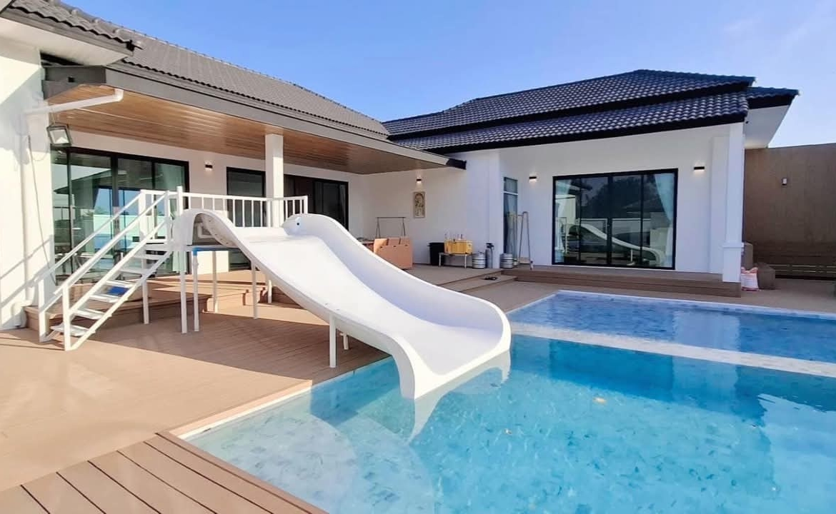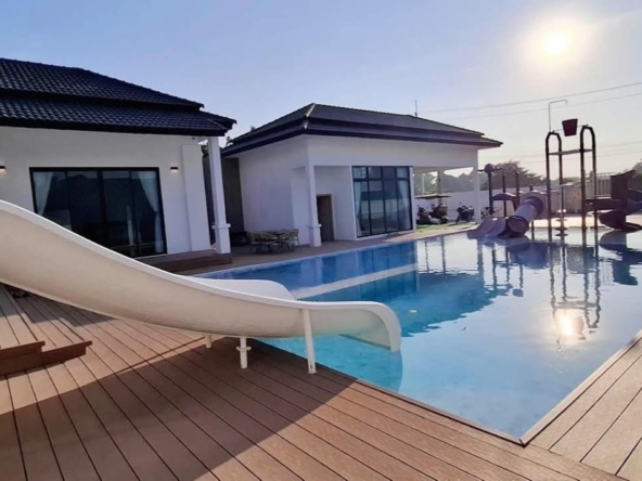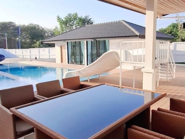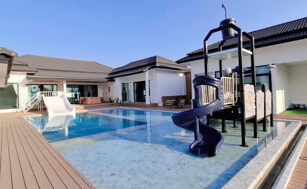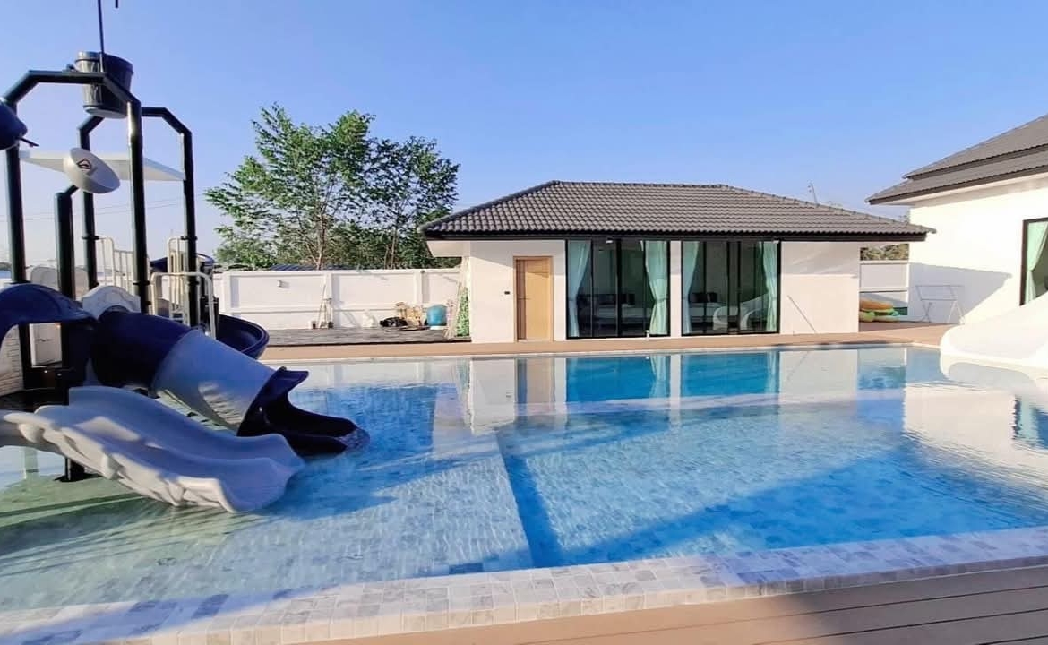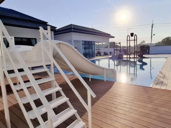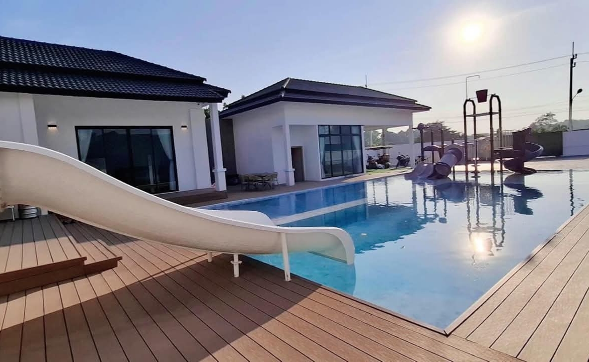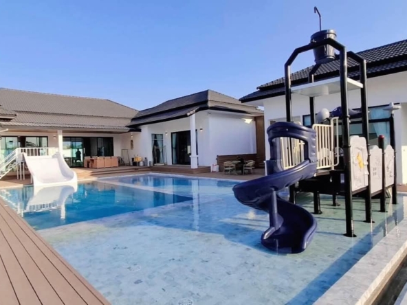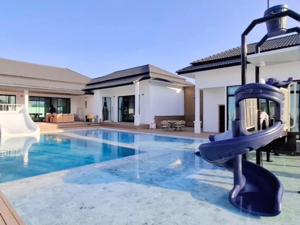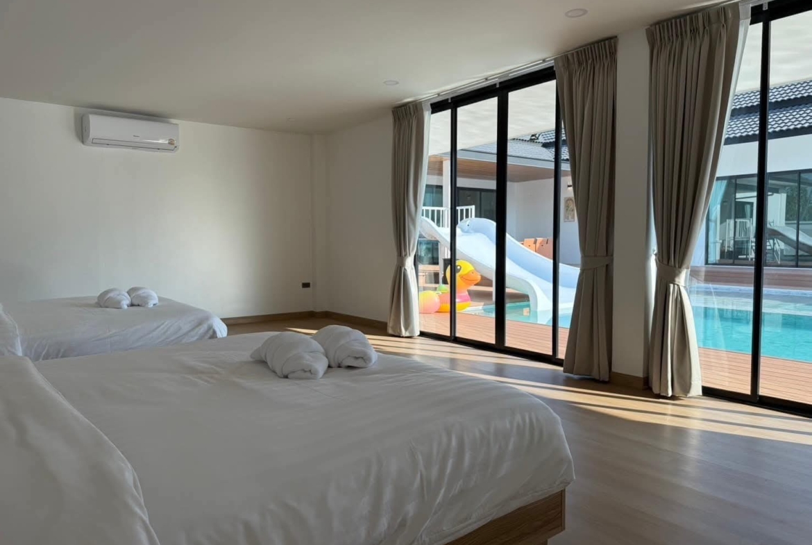#9P-10311 พูลวิลล่าขนาดใหญ่พร้อมสไลเดอร์สวนน้ำ 5 ห้องนอน เนื้อที่ 1 ไร่ 41 ตร.ว. เหมาะทำธุรกิจ ที่พัทยา เพียง 25.9 ล้านบาท! **ที่ตั้ง:** ตำบลห้วยใหญ่ อำเภอบางละมุง จังหวัดชลบุรี **รายละเอียดทรัพย์:** - บ้านเดี่ยวพูลวิลล่าชั้นเดียว - พื้นที่ 1 ไร่ 41 ตารางวา - พื้นที่ใช้สอยรวมกว่า 700 ตารางเมตร - 5 ห้องนอน 5 ห้องน้ำ - จอดรถได้ 10 คัน - สระว่ายน้ำขนาด 5x10 เมตร (ลึก 160 ซม.) - สระว่ายน้ำเด็กขนาด 5x15 เมตร (ลึก 30 และ 60 ซม.) - สวนหลังบ้านขนาด 400 ตารางเมตร **จุดเด่นโครงการ:** พูลวิลล่าขนาดใหญ่พร้อมดำเนินธุรกิจ มาพร้อมสไลเดอร์สวนน้ำทั้งสำหรับเด็กและผู้ใหญ่ ตกแต่งครบพร้อมเฟอร์นิเจอร์ระดับ 5 ดาว เครื่องใช้ไฟฟ้าครบชุด เหมาะสำหรับทำธุรกิจที่พักตากอากาศหรือรีสอร์ท พร้อมบริการให้คำปรึกษาระบบการบริหารจัดการธุรกิจฟรี **อุปกรณ์และเฟอร์นิเจอร์:** - เครื่องปรับอากาศ 7 เครื่อง - ทีวี 75 นิ้ว - โต๊ะพูล 8 ฟุต - เตียง 6 ฟุต พร้อมชุดที่นอนระดับ 5 ดาว 8 เตียง - สไลเดอร์เด็ก (มูลค่า 200,000 บาท) - สไลเดอร์ผู้ใหญ่ขนาด 2.2x5 เมตร (มูลค่า 100,000 บาท) - ผ้าม่าน โซฟา โต๊ะอาหาร - เครื่องทำน้ำร้อน ตู้เย็น **ราคาขาย:** 25.9 ล้านบาท (ค่าโอนและภาษีจ่าย 50:50) **สนใจติดต่อ:** * โทร: 082-784-7036 (คุณพิมพ์) * WhatsApp: +6682-784-7036 (Pimm) * Line ID: pimAgent * WeChat: pimAgent * Telegram: pimAgent # Large Pool Villa with Water Park Slides, 5 Bedrooms, 1 Rai 41 sq.wah, Perfect for Business in Pattaya - Only 25.9M THB! **Location:** Huay Yai, Bang Lamung, Chonburi **Property Details:** - Single-storey pool villa - Land area 1 Rai 41 sq.wah - Total usable area over 700 sq.m. - 5 bedrooms, 5 bathrooms - Parking for 10 cars - Swimming pool 5x10m (160cm deep) - Kids pool 5x15m (30cm and 60cm deep) - Back garden 400 sq.m. **Project Highlights:** Large pool villa ready for business operations, featuring water park slides for both children and adults. Fully furnished with 5-star quality furniture and complete electrical appliances. Perfect for vacation rental business or resort operation. Free consultation on business management systems included. **Equipment and Furniture:** - 7 air conditioners - 75-inch TV - 8-foot pool table - Eight 6-foot beds with 5-star quality mattresses - Kids slider (worth 200,000 THB) - Adult slider 2.2x5m (worth 100,000 THB) - Curtains, sofas, dining tables - Water heater, refrigerator **Selling Price:** 25.9M THB (Transfer fees and taxes split 50:50) **Contact:** * Tel: 082-784-7036 (Khun Pimm) * WhatsApp: +6682-784-7036 (Pimm) * Line ID: pimAgent * WeChat: pimAgent * Telegram: pimAgent # 芭提雅大型水上乐园泳池别墅,5间卧室,1莱41平方瓦,适合经营 - 仅售2590万泰铢! **位置:** 华亚,邦拉蒙,春武里府 **房产详情:** - 单层泳池别墅 - 土地面积1莱41平方瓦 - 总使用面积超过700平方米 - 5间卧室,5间浴室 - 可停放10辆车 - 游泳池5x10米(深160厘米) - 儿童池5x15米(深30和60厘米) - 后花园400平方米 **项目亮点:** 大型泳池别墅ready for business,配备儿童和成人水上滑梯。配有五星级品质家具和完整电器。适合经营度假租赁或度假村。附赠企业管理系统咨询服务。 **设备和家具:** - 7台空调 - 75寸电视 - 8尺台球桌 - 8张6尺床配五星级床垫 - 儿童滑梯(价值20万泰铢) - 成人滑梯2.2x5米(价值10万泰铢) - 窗帘、沙发、餐桌 - 热水器、冰箱 **售价:** 2590万泰铢(过户费和税费各付50%) **联系方式:** * 电话:082-784-7036(Pimm) * WhatsApp:+6682-784-7036(Pimm) * Line ID:pimAgent * WeChat:pimAgent * Telegram:pimAgent # Большая вилла с бассейном и аквапарком, 5 спален, 1 рай 41 кв.ва, идеально для бизнеса в Паттайе - Всего 25.9 млн бат! **Расположение:** Хуай Яй, Банг Ламунг, Чонбури **Детали недвижимости:** - Одноэтажная вилла с бассейном - Площадь участка 1 рай 41 кв.ва - Общая полезная площадь более 700 кв.м. - 5 спален, 5 ванных комнат - Парковка на 10 машин - Бассейн 5x10м (глубина 160см) - Детский бассейн 5x15м (глубина 30см и 60см) - Задний сад 400 кв.м. **Особенности проекта:** Большая вилла с бассейном, готовая к ведению бизнеса, с водными горками для д