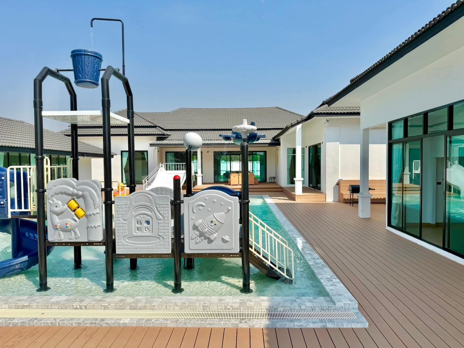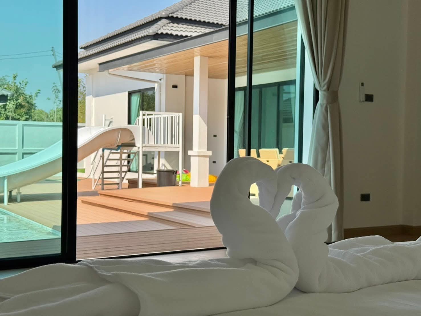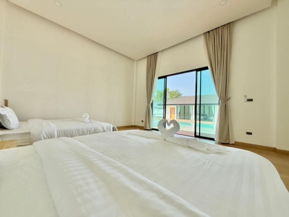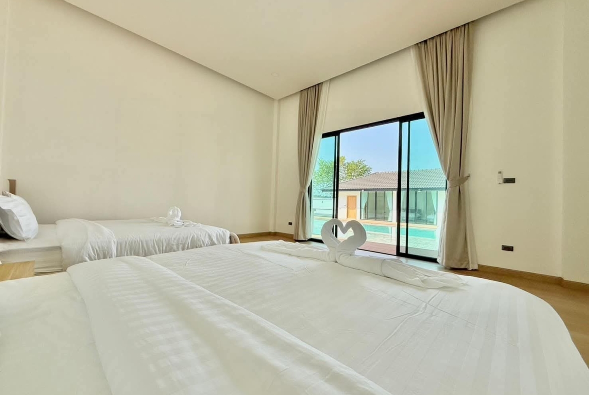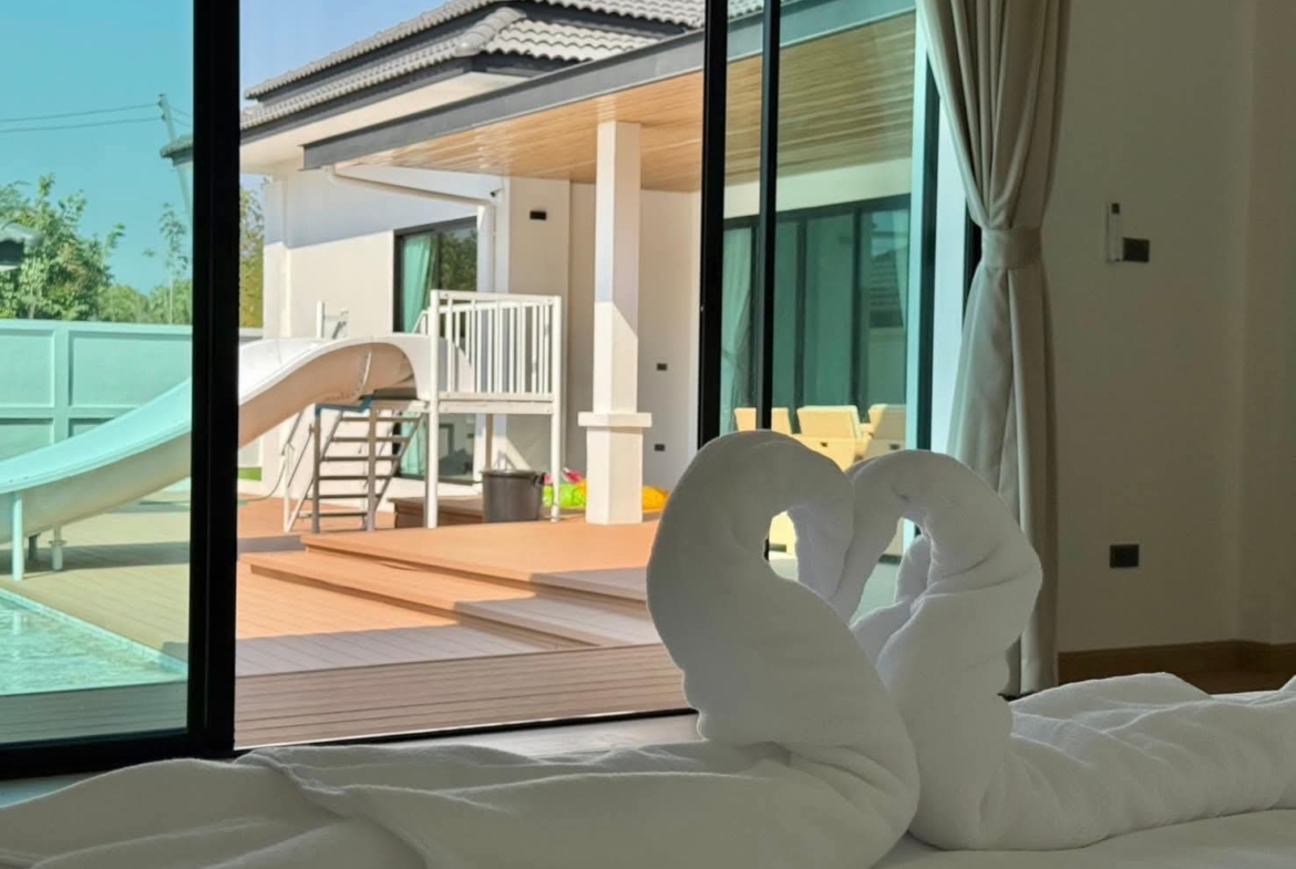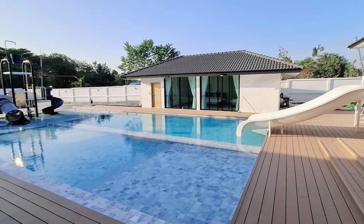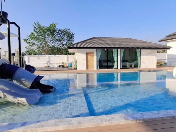 #9P-10311 พูลวิลล่าขนาดใหญ่พร้อมสไลเดอร์สวนน้ำ 5 ห้องนอน เนื้อที่ 1 ไร่ 41 ตร.ว. เหมาะทำธุรกิจ ที่พัทยา เพียง 25.9 ล้านบาท! **ที่ตั้ง:** ตำบลห้วยใหญ่ อำเภอบางละมุง จังหวัดชลบุรี **รายละเอียดทรัพย์:** - บ้านเดี่ยวพูลวิลล่าชั้นเดียว - พื้นที่ 1 ไร่ 41 ตารางวา - พื้นที่ใช้สอยรวมกว่า 700 ตารางเมตร - 5 ห้องนอน 5 ห้องน้ำ - จอดรถได้ 10 คัน - สระว่ายน้ำขนาด 5x10 เมตร (ลึก 160 ซม.) - สระว่ายน้ำเด็กขนาด 5x15 เมตร (ลึก 30 และ 60 ซม.) - สวนหลังบ้านขนาด 400 ตารางเมตร **จุดเด่นโครงการ:** พูลวิลล่าขนาดใหญ่พร้อมดำเนินธุรกิจ มาพร้อมสไลเดอร์สวนน้ำทั้งสำหรับเด็กและผู้ใหญ่ ตกแต่งครบพร้อมเฟอร์นิเจอร์ระดับ 5 ดาว เครื่องใช้ไฟฟ้าครบชุด เหมาะสำหรับทำธุรกิจที่พักตากอากาศหรือรีสอร์ท พร้อมบริการให้คำปรึกษาระบบการบริหารจัดการธุรกิจฟรี **อุปกรณ์และเฟอร์นิเจอร์:** - เครื่องปรับอากาศ 7 เครื่อง - ทีวี 75 นิ้ว - โต๊ะพูล 8 ฟุต - เตียง 6 ฟุต พร้อมชุดที่นอนระดับ 5 ดาว 8 เตียง - สไลเดอร์เด็ก (มูลค่า 200,000 บาท) - สไลเดอร์ผู้ใหญ่ขนาด 2.2x5 เมตร (มูลค่า 100,000 บาท) - ผ้าม่าน โซฟา โต๊ะอาหาร - เครื่องทำน้ำร้อน ตู้เย็น **ราคาขาย:** 25.9 ล้านบาท (ค่าโอนและภาษีจ่าย 50:50) **สนใจติดต่อ:** * โทร: 082-784-7036 (คุณพิมพ์) * WhatsApp: +6682-784-7036 (Pimm) * Line ID: pimAgent * WeChat: pimAgent * Telegram: pimAgent # Large Pool Villa with Water Park Slides, 5 Bedrooms, 1 Rai 41 sq.wah, Perfect for Business in Pattaya - Only 25.9M THB! **Location:** Huay Yai, Bang Lamung, Chonburi **Property Details:** - Single-storey pool villa - Land area 1 Rai 41 sq.wah - Total usable area over 700 sq.m. - 5 bedrooms, 5 bathrooms - Parking for 10 cars - Swimming pool 5x10m (160cm deep) - Kids pool 5x15m (30cm and 60cm deep) - Back garden 400 sq.m. **Project Highlights:** Large pool villa ready for business operations, featuring water park slides for both children and adults. Fully furnished with 5-star quality furniture and complete electrical appliances. Perfect for vacation rental business or resort operation. Free consultation on business management systems included. **Equipment and Furniture:** - 7 air conditioners - 75-inch TV - 8-foot pool table - Eight 6-foot beds with 5-star quality mattresses - Kids slider (worth 200,000 THB) - Adult slider 2.2x5m (worth 100,000 THB) - Curtains, sofas, dining tables - Water heater, refrigerator **Selling Price:** 25.9M THB (Transfer fees and taxes split 50:50) **Contact:** * Tel: 082-784-7036 (Khun Pimm) * WhatsApp: +6682-784-7036 (Pimm) * Line ID: pimAgent * WeChat: pimAgent * Telegram: pimAgent # 芭提雅大型水上乐园泳池别墅,5间卧室,1莱41平方瓦,适合经营 - 仅售2590万泰铢! **位置:** 华亚,邦拉蒙,春武里府 **房产详情:** - 单层泳池别墅 - 土地面积1莱41平方瓦 - 总使用面积超过700平方米 - 5间卧室,5间浴室 - 可停放10辆车 - 游泳池5x10米(深160厘米) - 儿童池5x15米(深30和60厘米) - 后花园400平方米 **项目亮点:** 大型泳池别墅ready for business,配备儿童和成人水上滑梯。配有五星级品质家具和完整电器。适合经营度假租赁或度假村。附赠企业管理系统咨询服务。 **设备和家具:** - 7台空调 - 75寸电视 - 8尺台球桌 - 8张6尺床配五星级床垫 - 儿童滑梯(价值20万泰铢) - 成人滑梯2.2x5米(价值10万泰铢) - 窗帘、沙发、餐桌 - 热水器、冰箱 **售价:** 2590万泰铢(过户费和税费各付50%) **联系方式:** * 电话:082-784-7036(Pimm) * WhatsApp:+6682-784-7036(Pimm) * Line ID:pimAgent * WeChat:pimAgent * Telegram:pimAgent # Большая вилла с бассейном и аквапарком, 5 спален, 1 рай 41 кв.ва, идеально для бизнеса в Паттайе - Всего 25.9 млн бат! **Расположение:** Хуай Яй, Банг Ламунг, Чонбури **Детали недвижимости:** - Одноэтажная вилла с бассейном - Площадь участка 1 рай 41 кв.ва - Общая полезная площадь более 700 кв.м. - 5 спален, 5 ванных комнат - Парковка на 10 машин - Бассейн 5x10м (глубина 160см) - Детский бассейн 5x15м (глубина 30см и 60см) - Задний сад 400 кв.м. **Особенности проекта:** Большая вилла с бассейном, готовая к ведению бизнеса, с водными горками для д